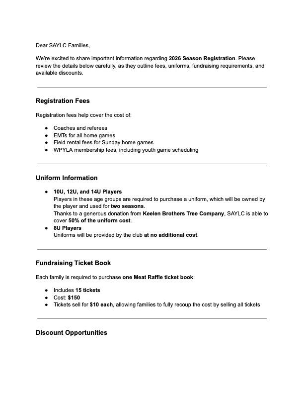 Shaler Area Youth Lacrosse Club is a non-profit 501c3, organization dedicated to the success and growth of youth lacrosse in our community. The Board of Directors is made up of committed volunteers who generously give their time to support the program. Board members assist with organizing practices, managing equipment, coordinating fundraising efforts, planning social events, overseeing tournaments, and handling any other duties necessary to support the program.The 2026 Executive Board is comprised of the following individuals:● President: Matt Kline